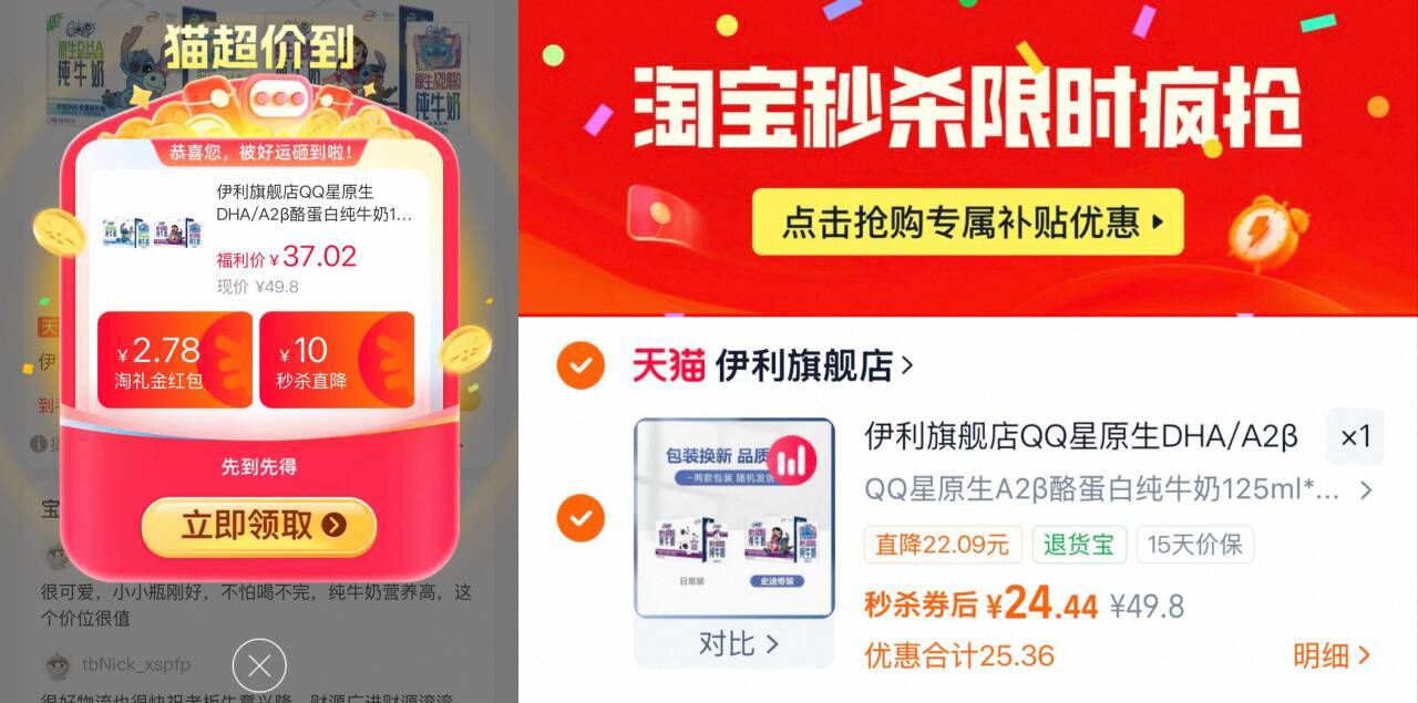 1.5亓/盒无券叠限时礼金 下拉详情进秒杀频道拍24.4亓 伊利 QQ星纯牛奶125ml*16盒 好单发报员 2026年01月28日 10:43 0 举报 1.5亓/盒无券叠限时礼金下拉详情进秒杀频道拍24.4亓【伊利】QQ星纯牛奶125ml*16盒https://m.tb.cn/h.7KijEa2超市一箱要69了!两种口味任选 复制文案