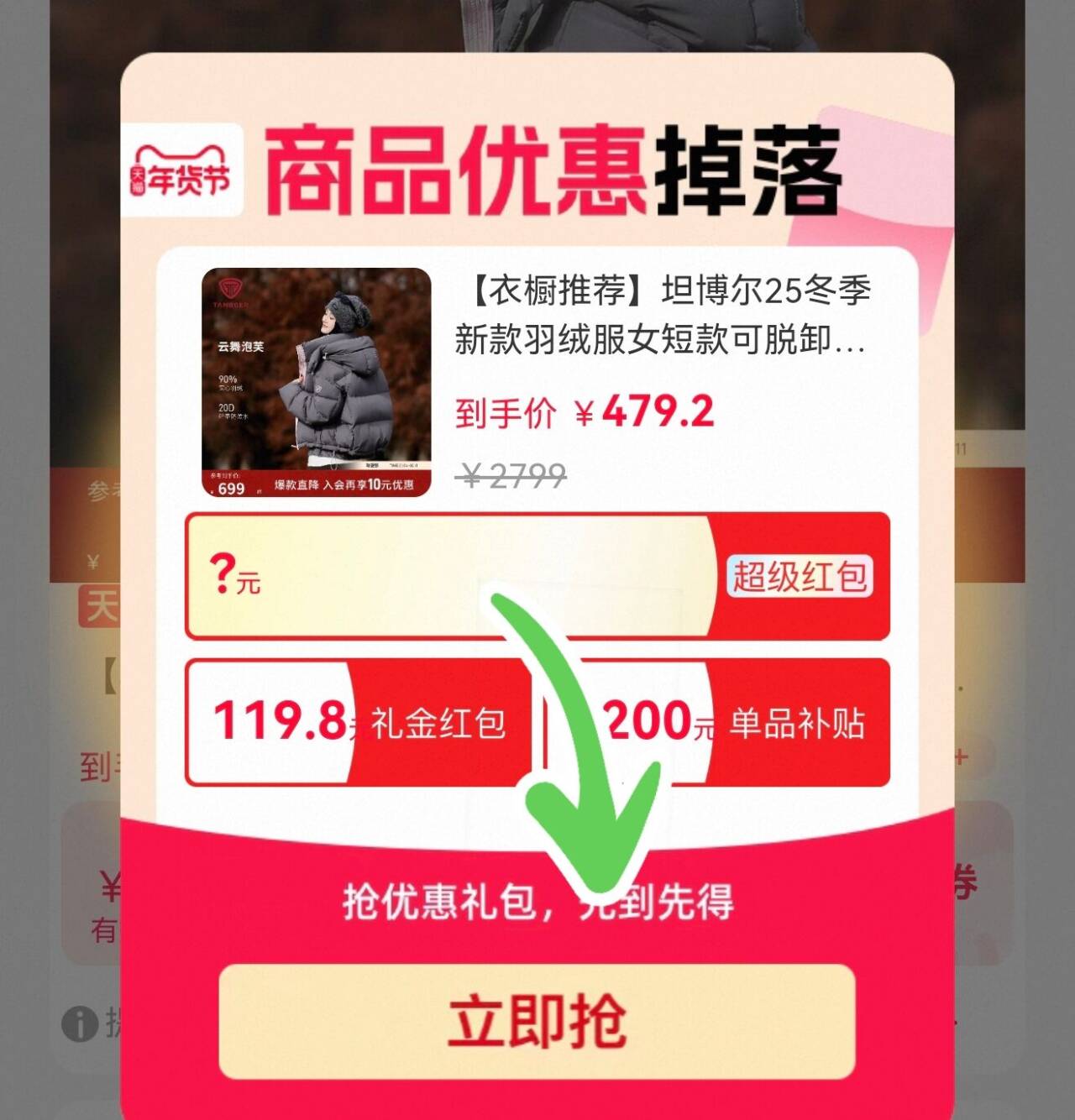 坦博尔泡芙羽绒服! 现在弹大额礼唫,领