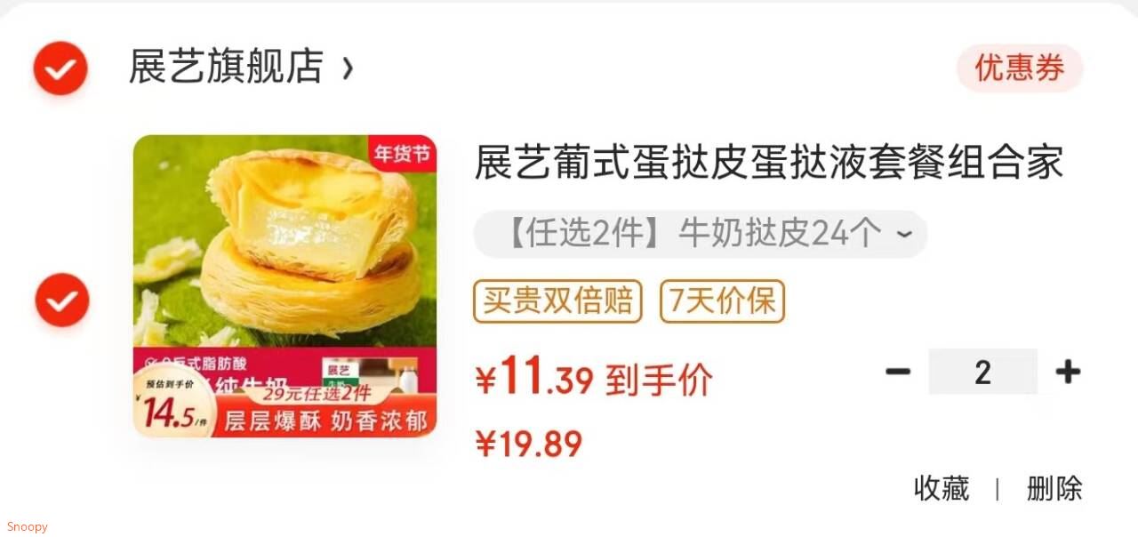 领39-17 展艺 葡式蛋挞皮蛋挞液套餐 牛奶挞皮24个,任选2件 22好单发报员2026年01月28日 12:030举报 领39-17 https://u.jd.com/JOO45AR 展艺 葡式蛋挞皮蛋挞液套餐 牛奶挞皮24个,任选2件【22】https://u.jd.com/JgONbTn 复制文案