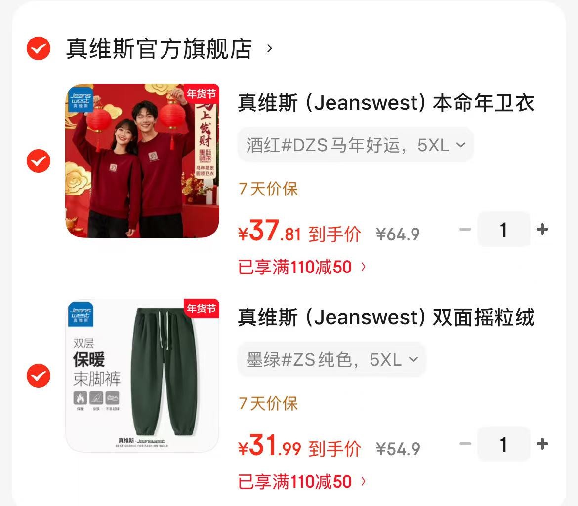 真维斯 本命年卫衣 双面摇粒绒裤子,各拍1件【69】