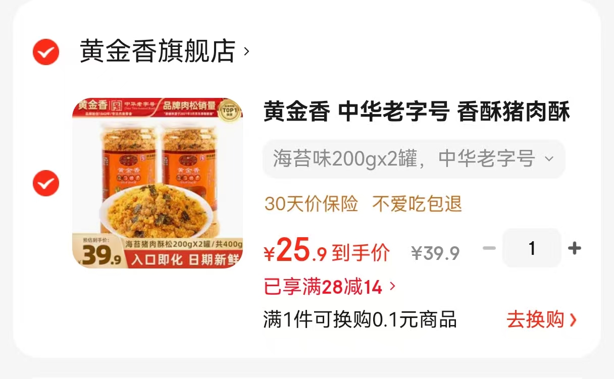 黄金香 中华老字号 香酥猪肉酥松200gx2罐【25.9】