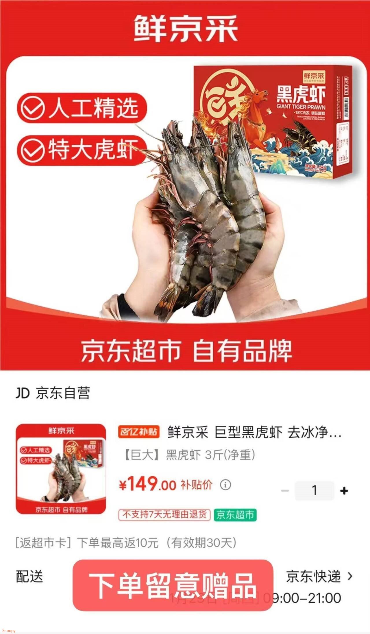 特大号黑虎虾有了 鲜京采 巨型黑虎虾去冰净重3斤 149自营包U,反10亓超.市卡好单发报员2026年01月28日 14:390举报 ——特大号黑虎虾有了——鲜京采 巨型黑虎虾去冰净重3斤https://u.jd.com/JGaYTDb 149自营包U,反10亓超.市卡*比手掌还大 个大肥美 囤年货复制文案
