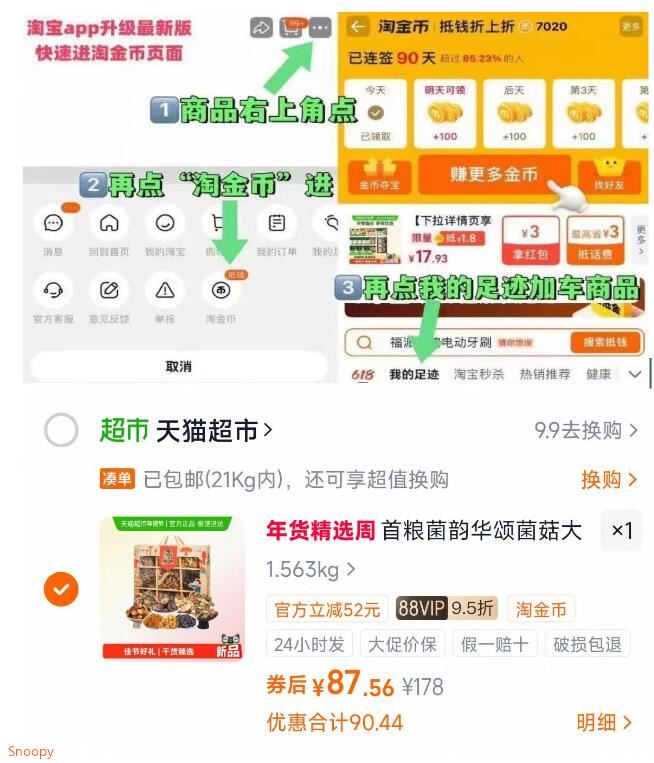 首粮菌菇山珍礼盒880g87元 88仅87亓,非88号会贵一点 -好单发报员2026年01月28日 15:540举报 首粮菌菇山珍礼盒880g87元88仅87亓,非88号会贵一点-1.淘宝打开口令,弹礼金领了2.商品右上3个点,选淘金币3.选 我的足迹-找到商品拍下https://m.tb.cn/h.7qmO0Il复制文案