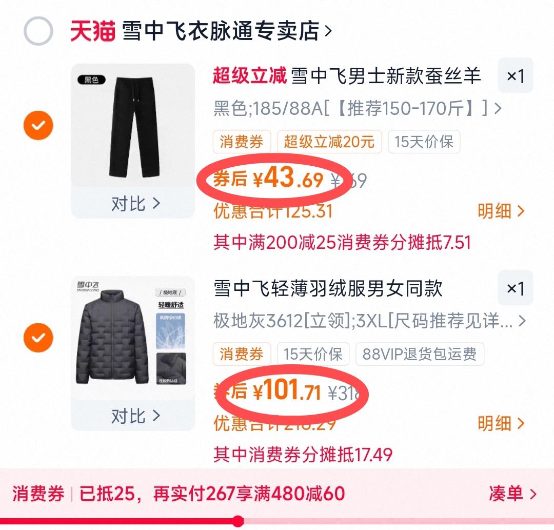 雪中飞 绵羊毛蚕丝卫裤 43元