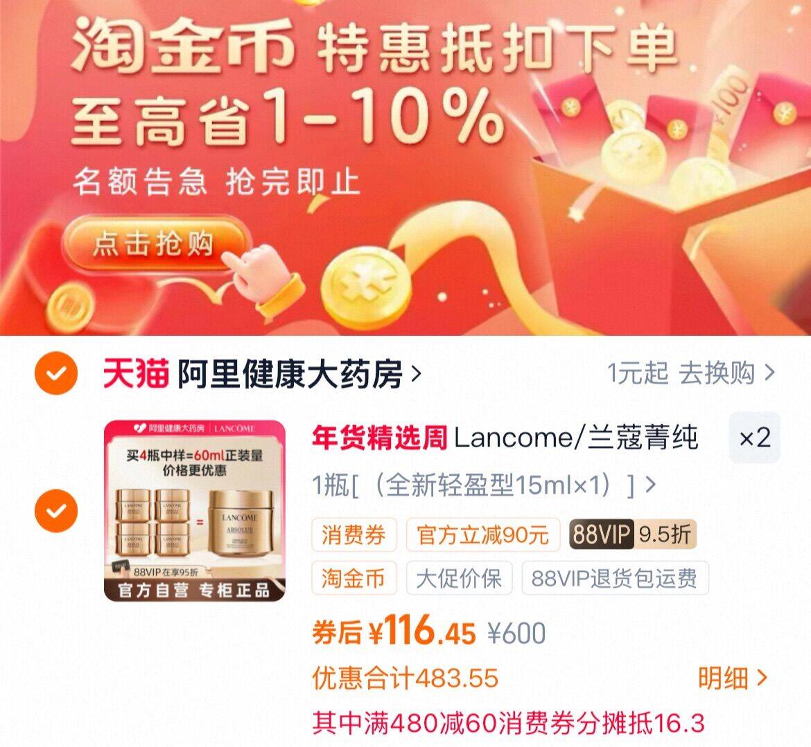 2、凑前三选项 1件,用消费券