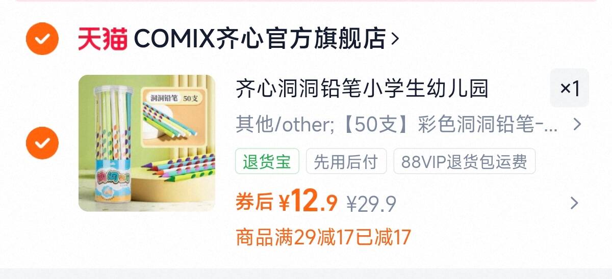 折0.2一支! 齐心洞洞铅笔50支12元.9