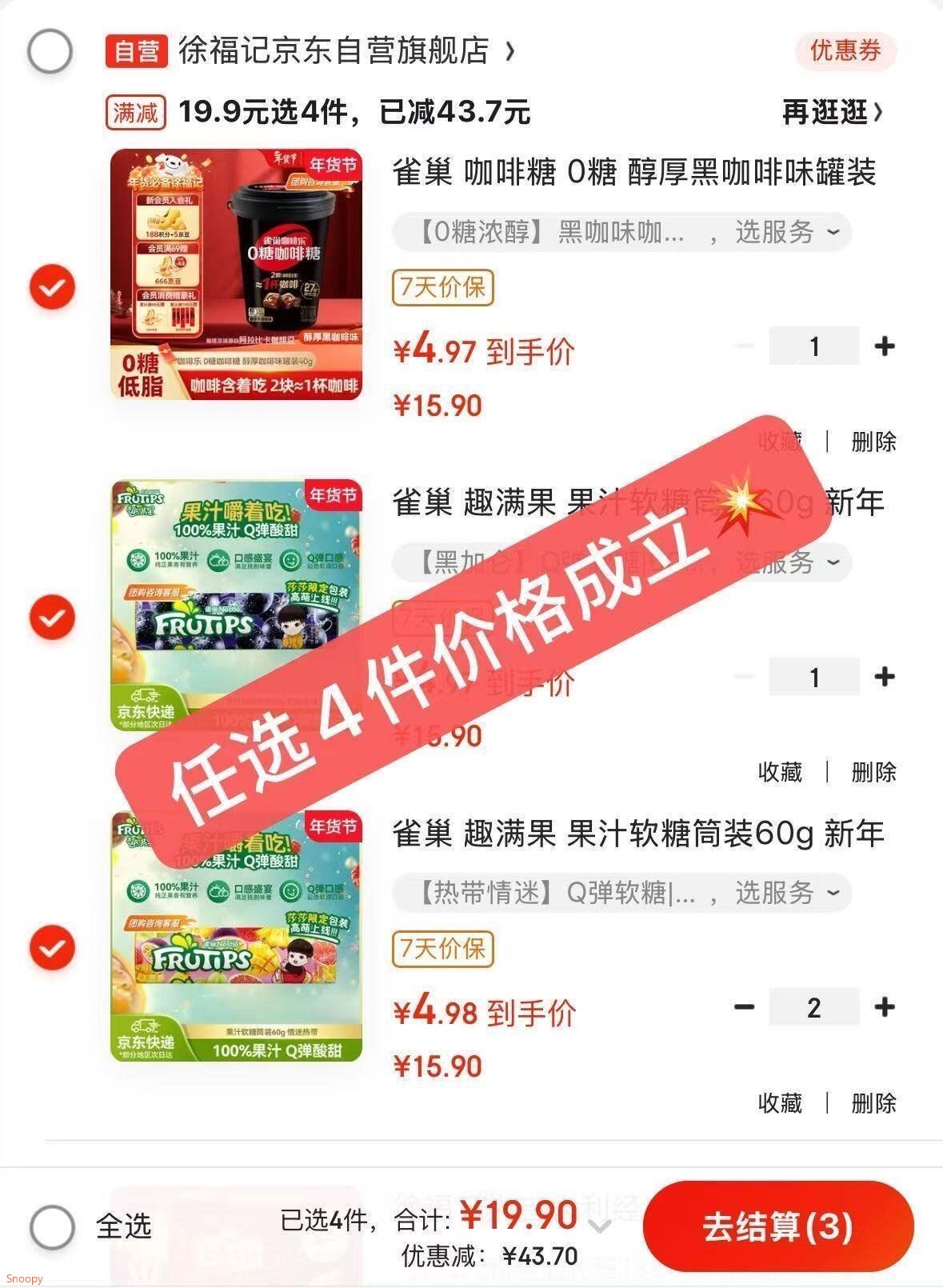 雀巢糖果发車 自营 软糖桶装60g/罐装40g 任选4件19.9亓 u,plus包U好单发报员2026年01月29日 09:200举报 ——雀巢糖果发車——【自营】软糖桶装60g/罐装40ghttps://u.jd.com/JrrDe1k 任选4件19.9亓 u,plus包U*折4.9/件 100%果汁 Q弹酸甜复制文案
