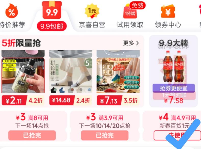 跳App-9.9苞.邮-领4.9-4券