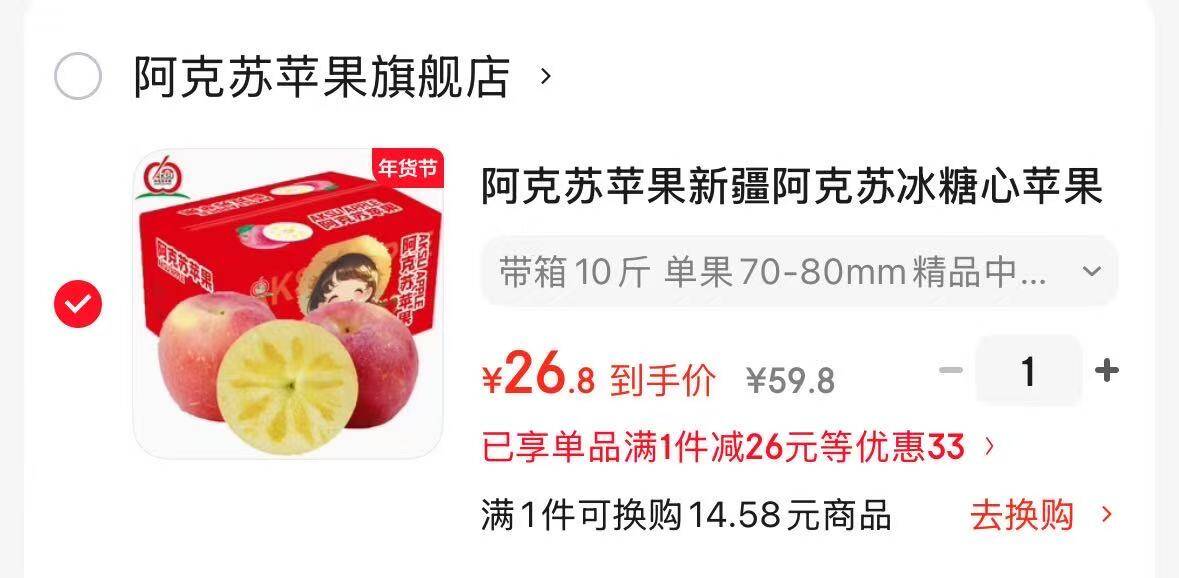 阿克苏新疆冰糖心苹果带箱10斤