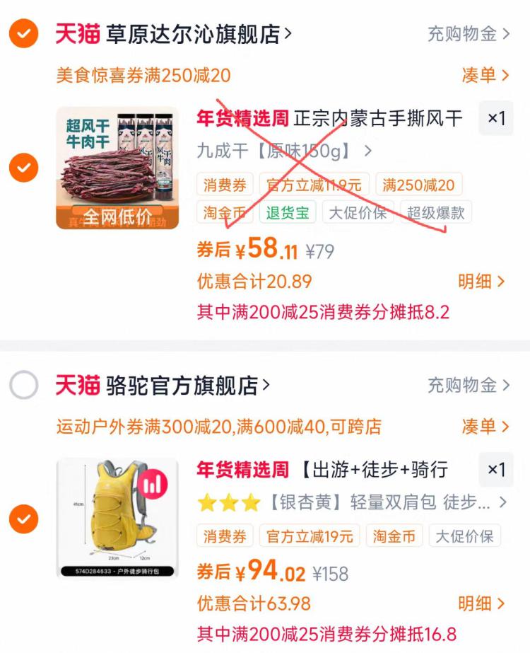 4.最后一步,凑単商品1件 骆驼户外登山包88仅94元 好单发报员 2026年01月29日 14:55 0 举报 4.最后一步,凑単商品1件https://m.tb.cn/h.7qzBwAV骆驼户外登山包88仅94元 复制文案