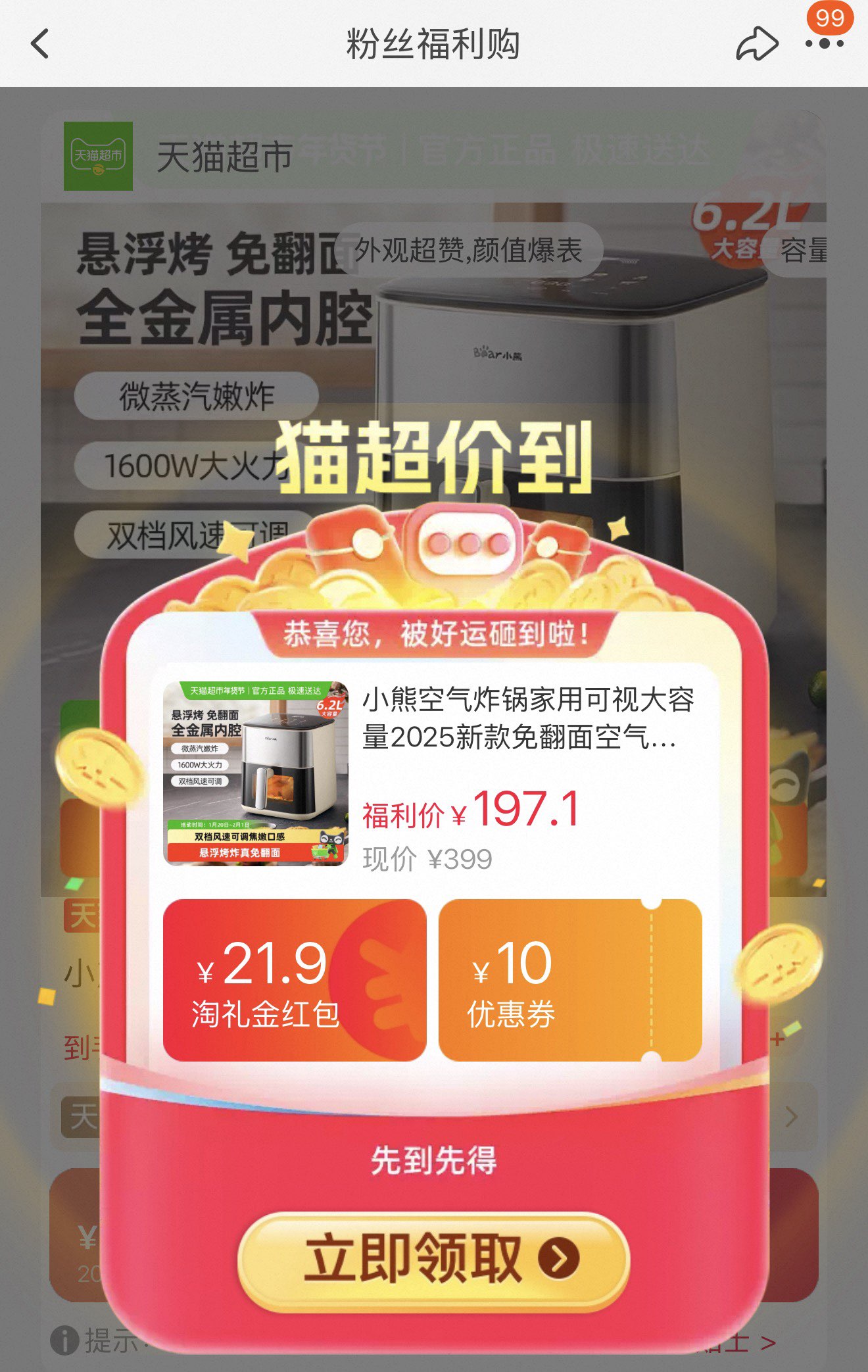 超市首页搜“小熊”,有5赠金(提交页面抵扣)