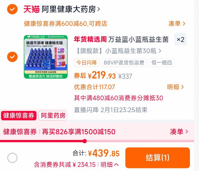 【阿里】万益蓝益生菌粉旗舰款小蓝瓶30瓶*2件