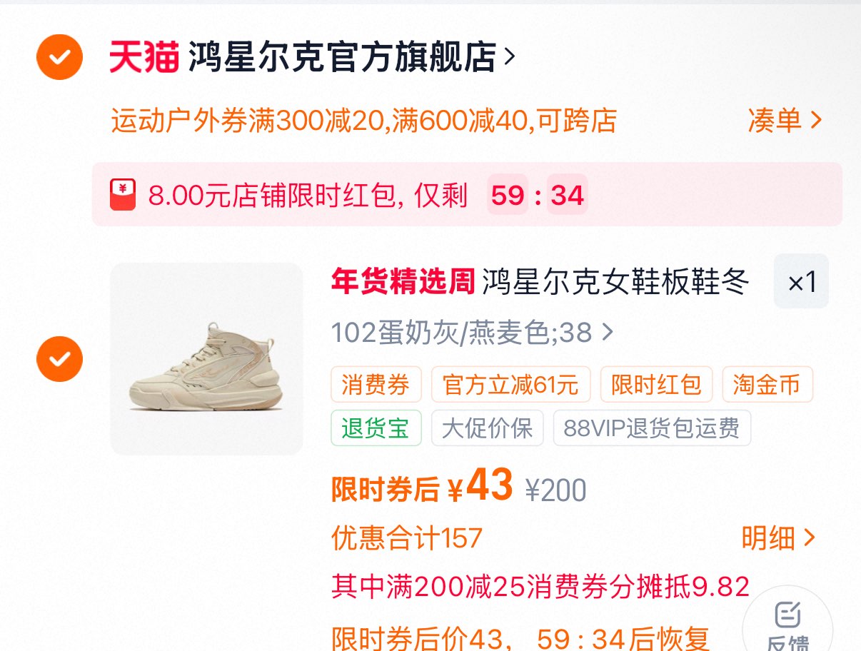 鸿星尔克板鞋女鞋运动鞋43亓