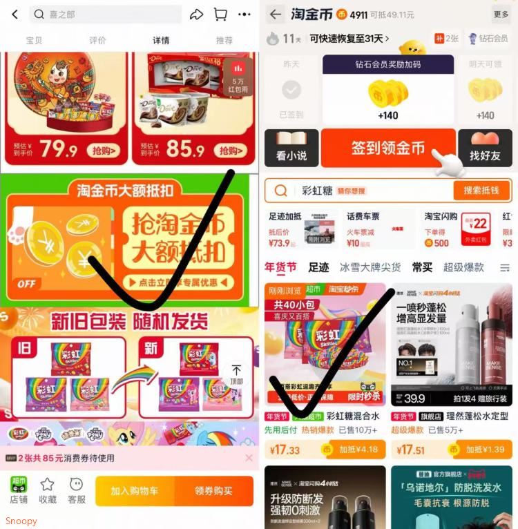 彩虹水果糖9g*40袋17元.3 需叠加淘礼金,价格才成立 -好单发报员2026年01月29日 19:440举报 彩虹水果糖9g*40袋17元.3需叠加淘礼金,价格才成立-1.如图下划详情进淘金币页面2.找到商品后叠金币直接拍下https://m.tb.cn/h.7qLqbH6复制文案