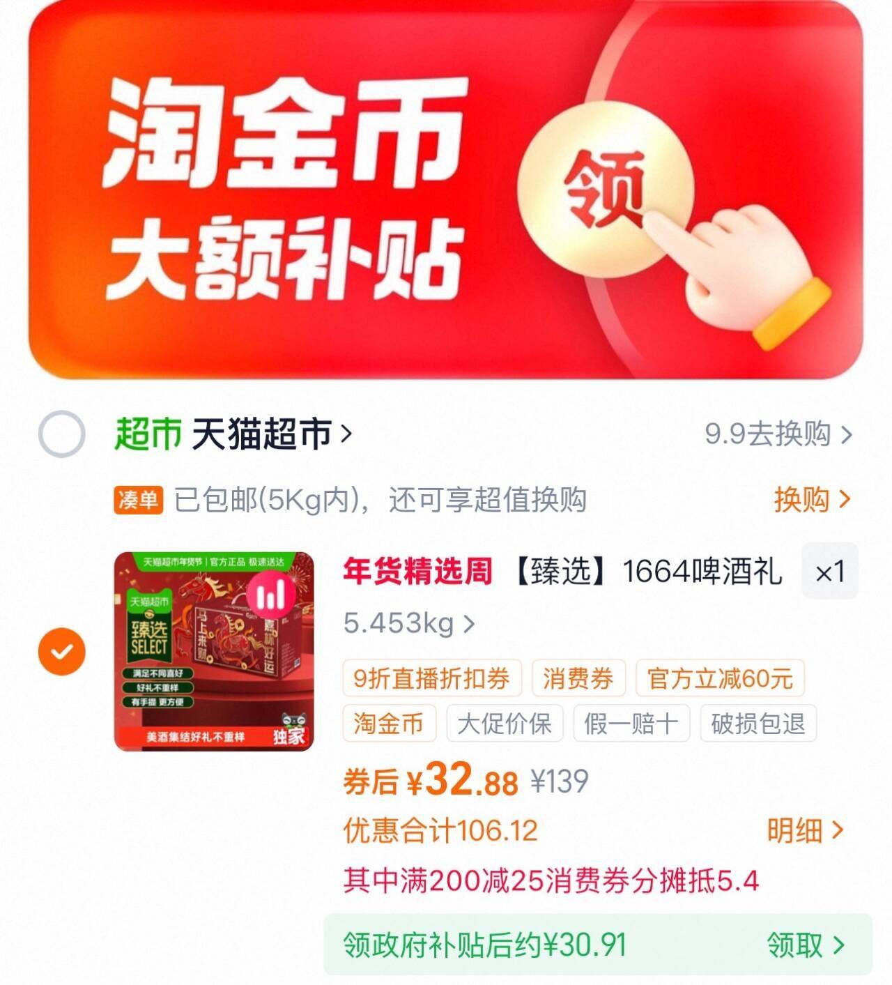 ④凑1件,可退了