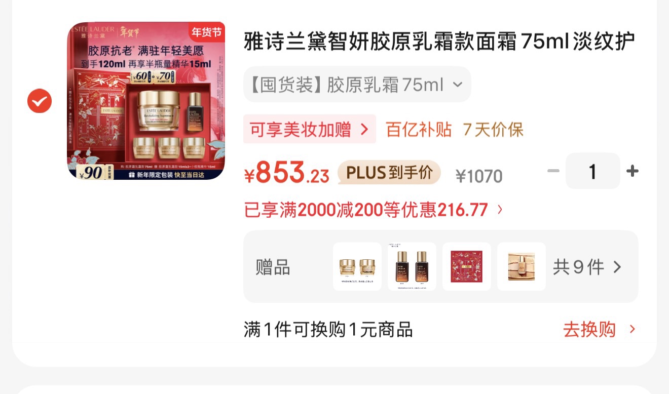 雅诗兰黛智妍面霜75ml 赠45ml 小棕瓶15ml 粉底液,凑后【853.23】https://u.jd.com/JG2CMAm