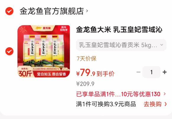 2.6亓/斤!金龙鱼大米好圿