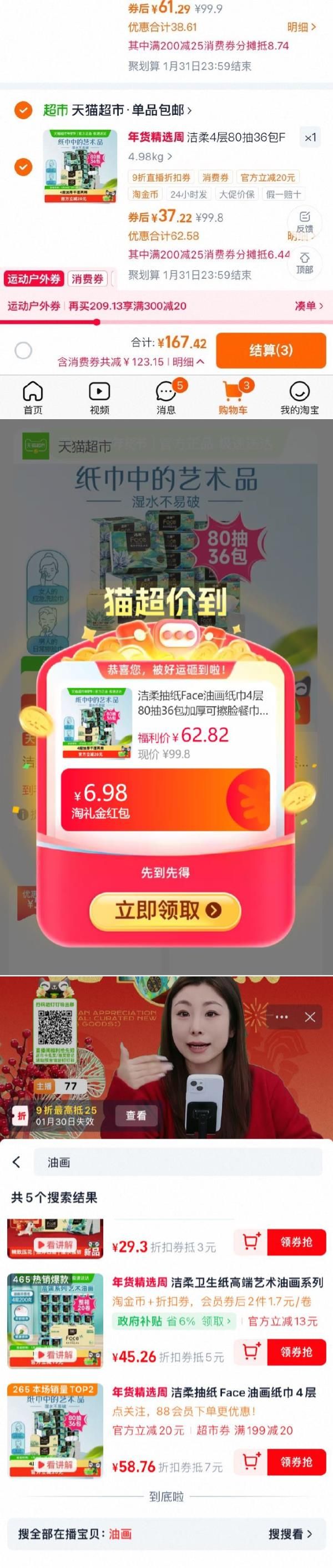 洁柔 Face油画抽纸 4层80抽36包,弹窗大额补贴