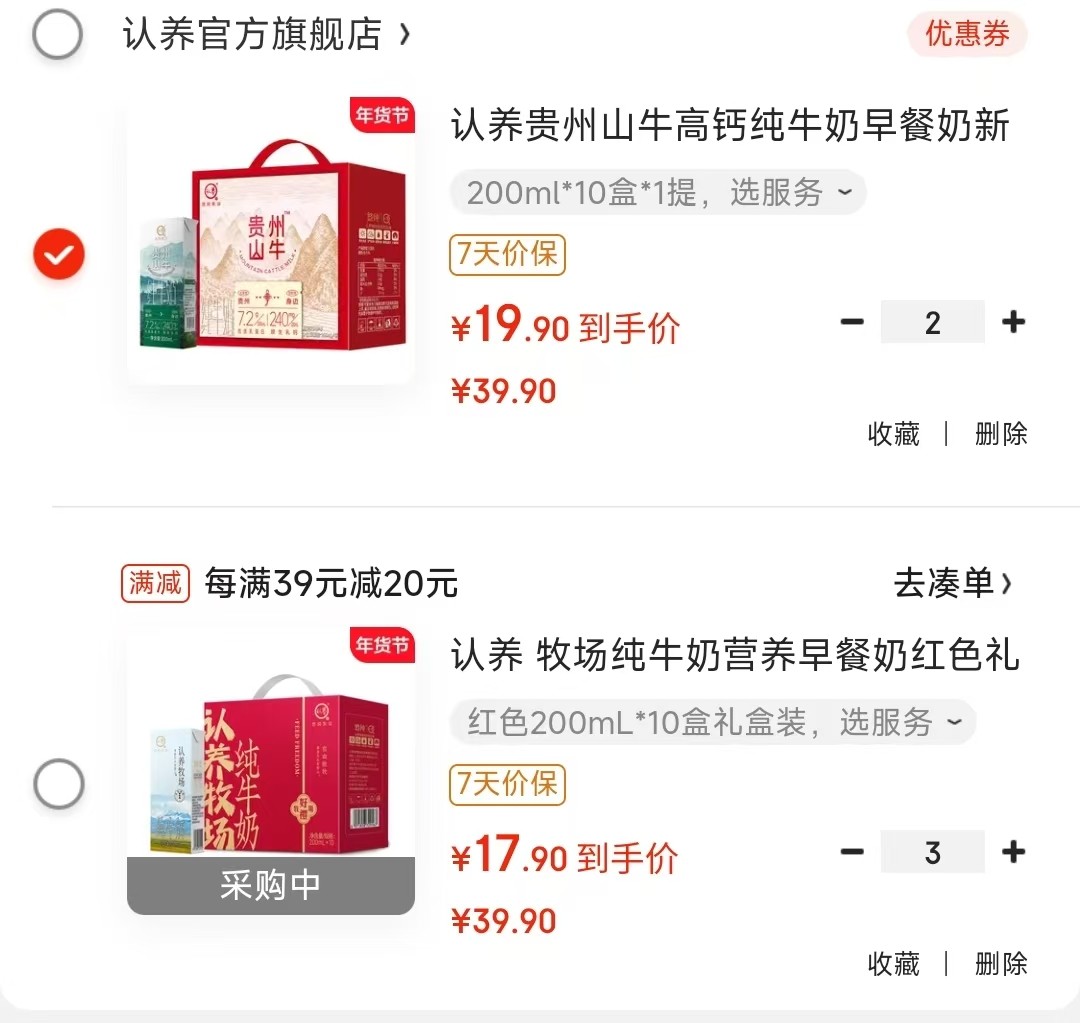 认养 牧场纯牛奶红色200mL*10盒礼盒装,拍3件【53.7】