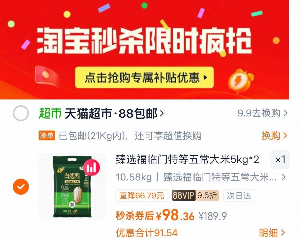 下拉详情拍 vip 98,折4.9亓/斤 福临门 自然香特等五常大米5kg*2袋好单发报员2026年01月30日 15:450举报 下拉详情拍vip 98,折4.9亓/斤福临门 自然香特等五常大米5kg*2袋https://m.tb.cn/h.7I4wJpY复制文案