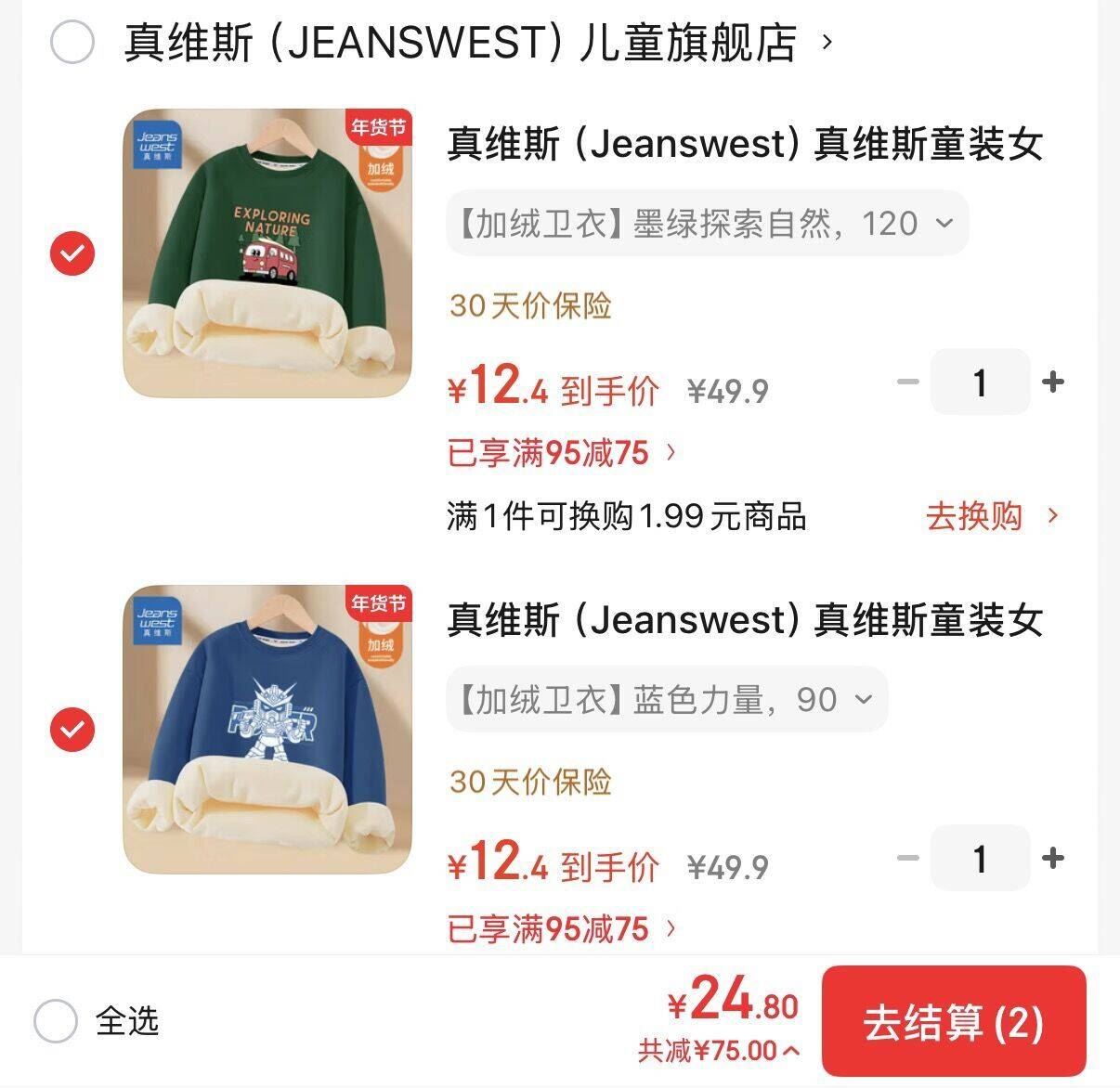 有尺码的闭眼入 12.9元/件 拍2件共24.8元 真维斯 儿童秋冬款加绒加厚卫衣好单发报员2026年01月30日 18:300举报 有尺码的闭眼入12.9元/件 拍2件共24.8元真维斯 儿童秋冬款加绒加厚卫衣https://u.jd.com/JDSa0eM 舒适保暖 史低好价手慢无码~复制文案