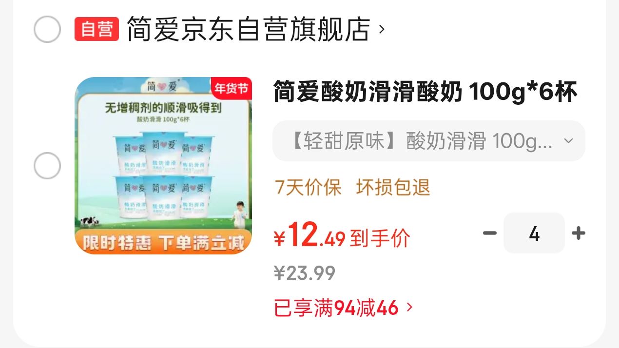 简爱酸奶滑滑酸奶 100g*6杯