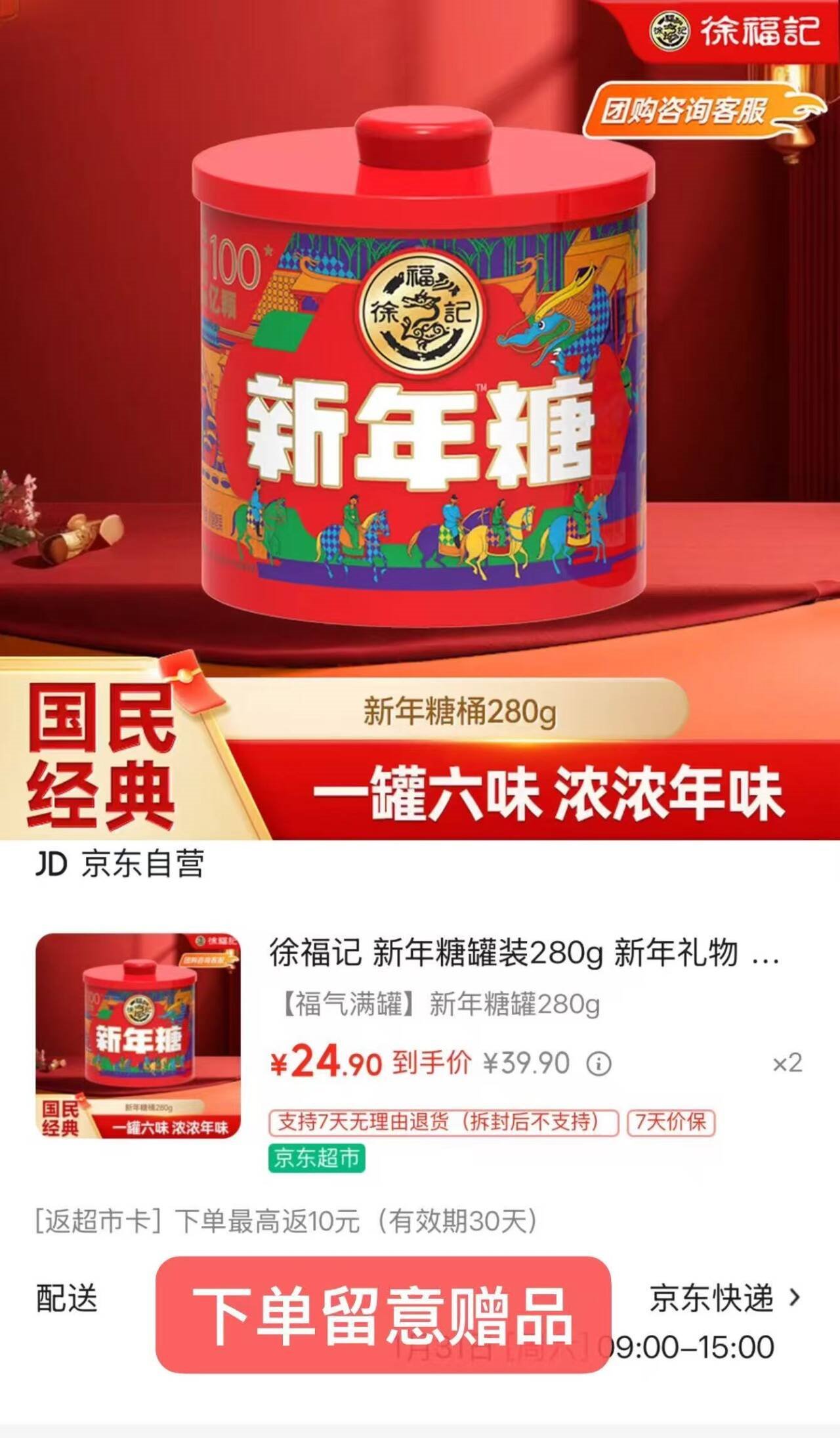 徐福记糖罐炒底 自营 徐福记 新年糖罐280g 买2件49.8亓 U,Plus包邮好单发报员2026年01月30日 19:350举报 ——徐福记糖罐炒底——【自营】徐福记 新年糖罐280ghttps://u.jd.com/JgSpku6买2件49.8亓 U,Plus包邮*再反10亓超.市卡低至39.8亓*才19.9/件 过年必.囤国货零食复制文案