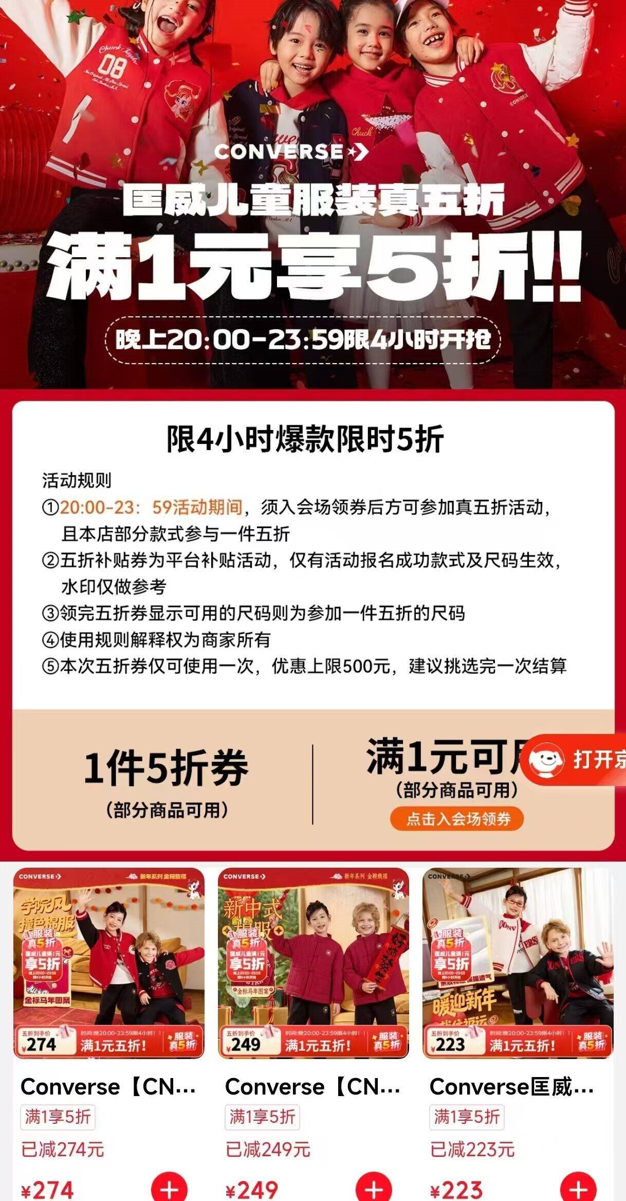 匡威童装5折发車 先领5折补帖卷 匡威 儿童新年系列服饰专区好单发报员2026年01月30日 20:170举报 ——匡威童装5折发車——先领5折补帖卷https://u.jd.com/JOPikz6匡威 儿童新年系列服饰专区https://u.jd.com/JgSmHOg任选1件74亓起,多款可选*大牌质量特别好 给孩子挑挑复制文案