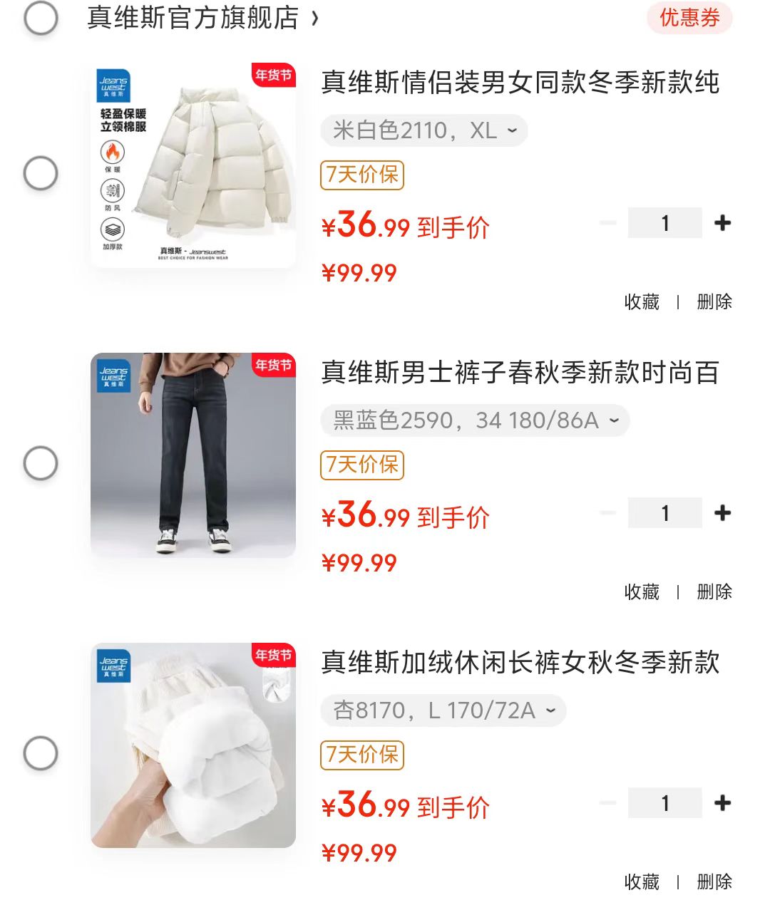 真维斯直筒牛仔裤