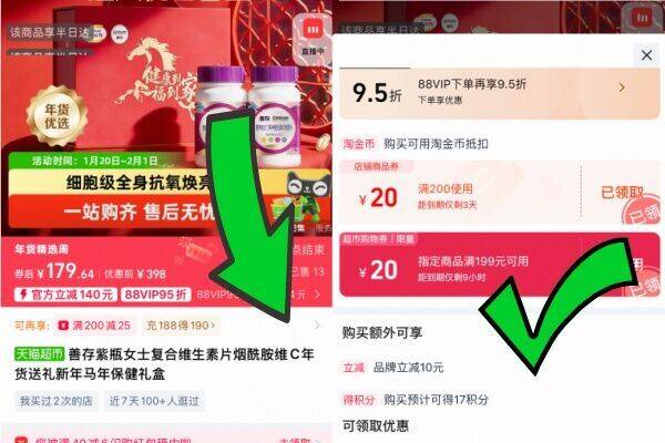 1.领券 加入购物车1件 88VIP 凑单消费券 叠福袋 右上淘金币 好单发报员 2026年01月30日 20:55 0 举报 1.领券 加入购物车1件88VIP 凑单消费券叠福袋 右上淘金币标题下领199-20超市券-善存.女士维生素120粒*2瓶https://m.tb.cn/h.7IjTIHR 复制文案