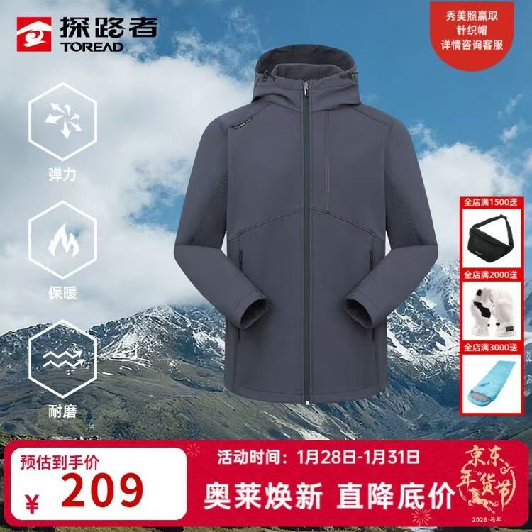探路者 男女户外防风软壳外套