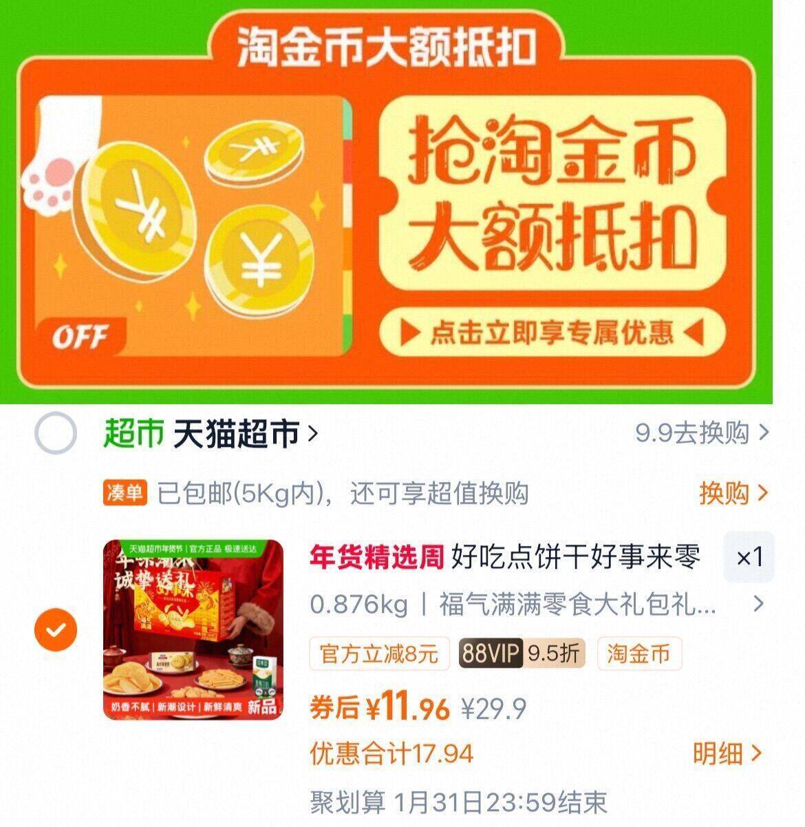下拉详情拍,vip 11.9亓 好吃点 福气满满饼干礼包608g好单发报员2026年01月30日 23:230举报 下拉详情拍,vip 11.9亓好吃点 福气满满饼干礼包608ghttps://m.tb.cn/h.7IlDAy4复制文案