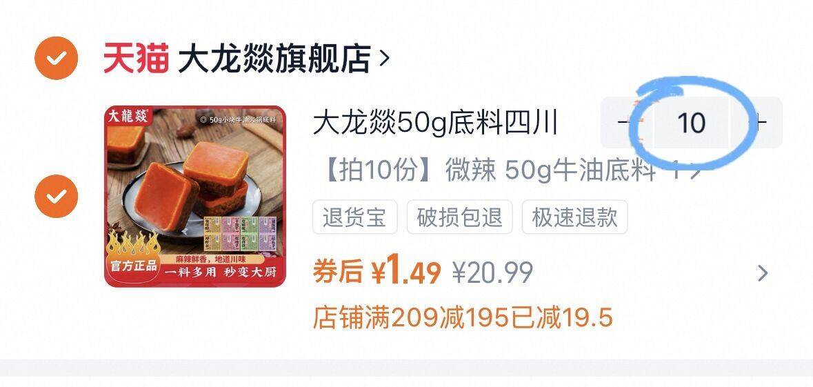 拍10件 1.4一袋 大龙燚牛油火锅底料共50g*10袋好单发报员2026年01月31日 00:230举报 拍10件 1.4一袋大龙燚牛油火锅底料共50g*10袋https://m.tb.cn/h.7r3H5ya复制文案