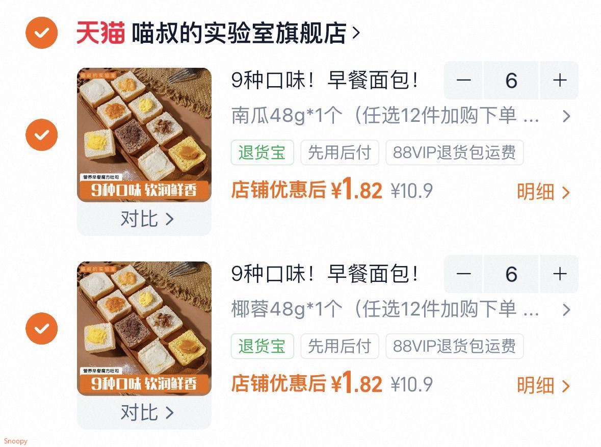 拍12件 1.8一个 喵叔魔方吐司手撕面包