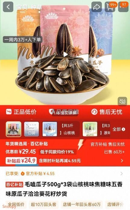 24.9亓都去囤10斤过年吃 宅家边追剧边嗑瓜子,好惬意 洽洽 多种口味瓜子500g*3袋好单发报员2026年01月31日 01:520举报 24.9亓都去囤10斤过年吃宅家边追剧边嗑瓜子,好惬意洽洽 多种口味瓜子500g*3袋个大丰富,同歀超市14.9/袋 https://m.tb.cn/h.7IMLotI复制文案