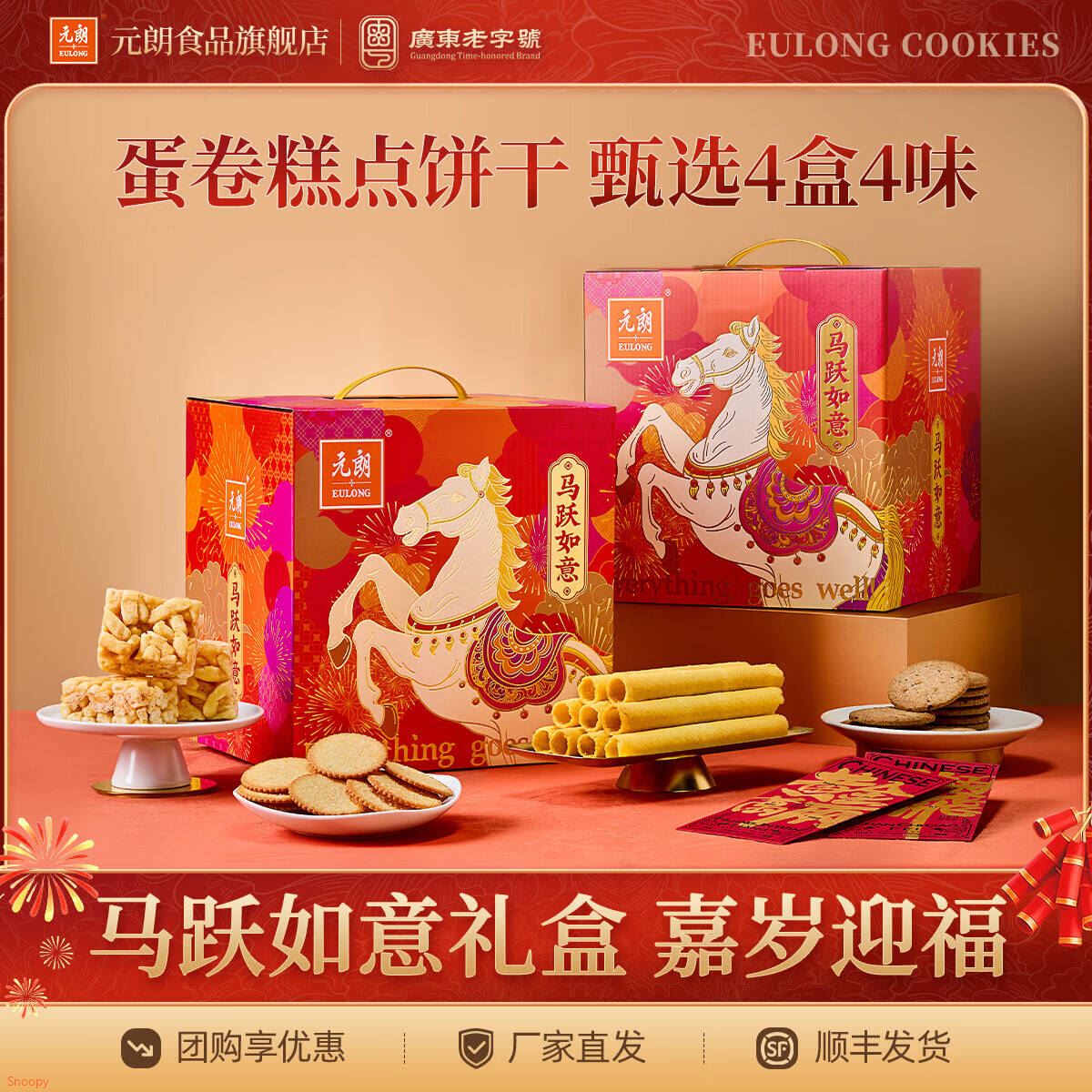 53.9元 元朗 鸡蛋卷饼干礼盒 马跃如意780g