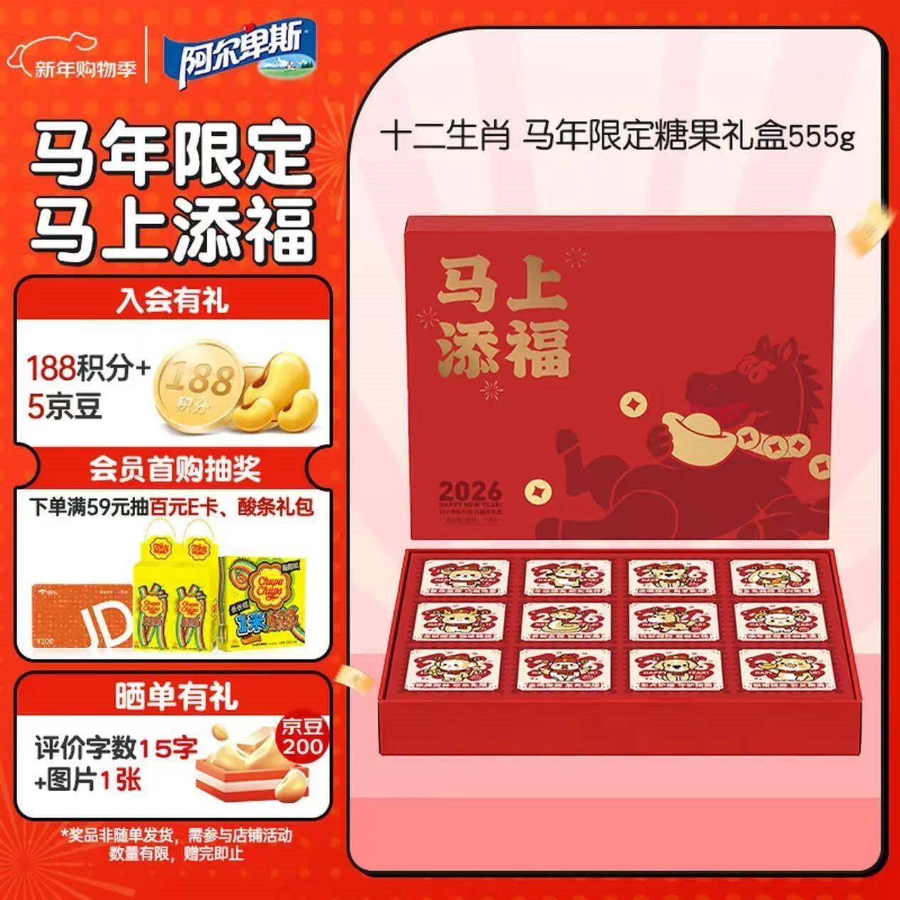 年货糖果礼盒发車 自营 阿尔卑斯 马年糖果555g 买2件79.8亓,折39.9亓/件好单发报员2026年01月31日 13:560举报 ——年货糖果礼盒发車——【自营】阿尔卑斯 马年糖果555ghttps://u.jd.com/JGBgRM2 买2件79.8亓,折39.9亓/件*贈礼袋*2 一口尝遍12种甜蜜*精致生肖小卡 过年送礼倍有面复制文案