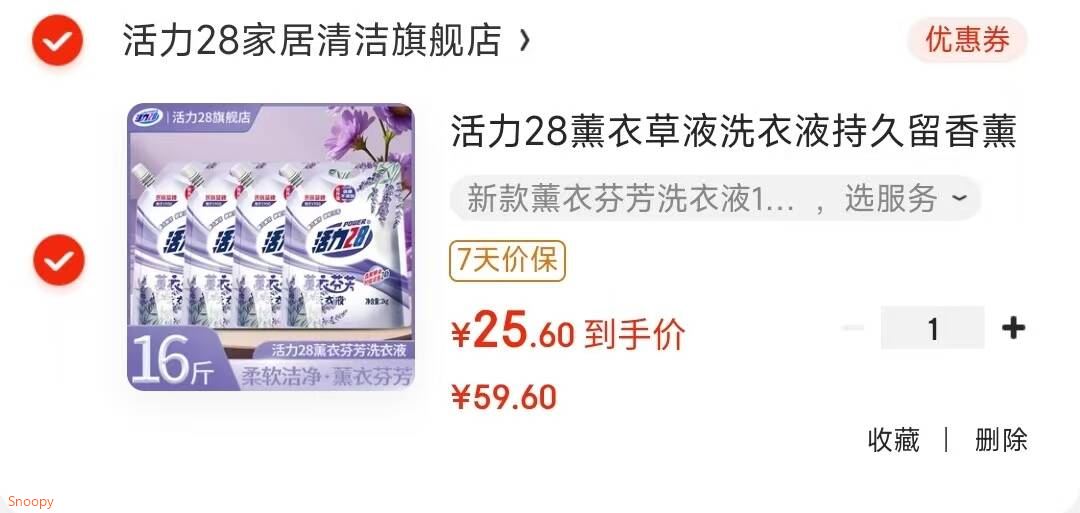 活力28 薰衣草液洗衣液16斤/2kg*4袋【25.6】