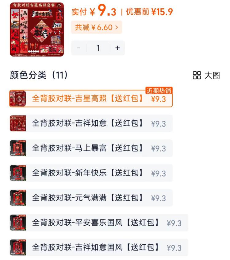背胶对联76件套带礼盒9元