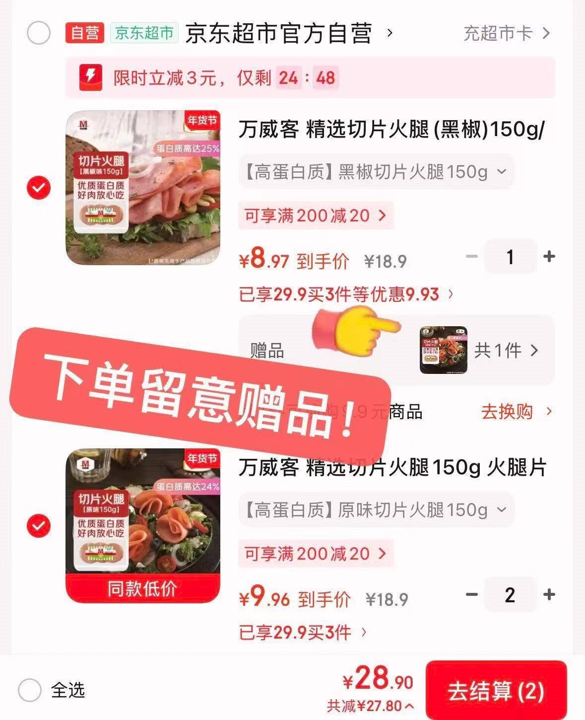 万威客火腿片炒底 自营 万威客 精选切片火腿150g 任选3件29.9亓 U,plus包邮好单发报员2026年01月31日 16:510举报 ——万威客火腿片炒底——【自营】万威客 精选切片火腿150ghttps://u.jd.com/JOpwQlchttps://u.jd.com/JgB7qX5任选3件29.9亓 U,plus包邮*再赠原味/黑椒150g 才7.4/件复制文案