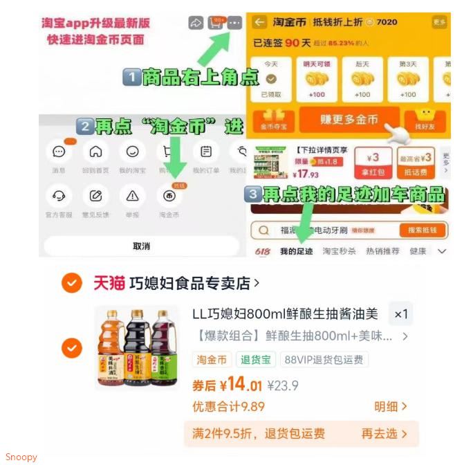 4块多/大瓶生抽料酒 巧媳妇调味800mlx3瓶14元 -好单发报员2026年01月31日 17:460举报 4块多/大瓶生抽料酒巧媳妇调味800mlx3瓶14元-1.商品右上3个点,选淘金币2.选 我的足迹-找到商品拍下https://m.tb.cn/h.7I2vOHa复制文案