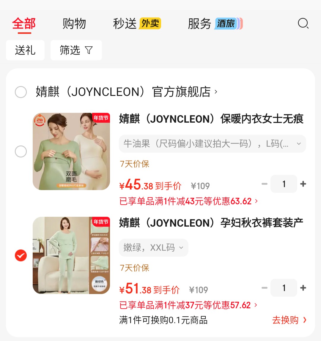 婧麒 保暖内衣女士无痕美肤肌底衣套装【46】