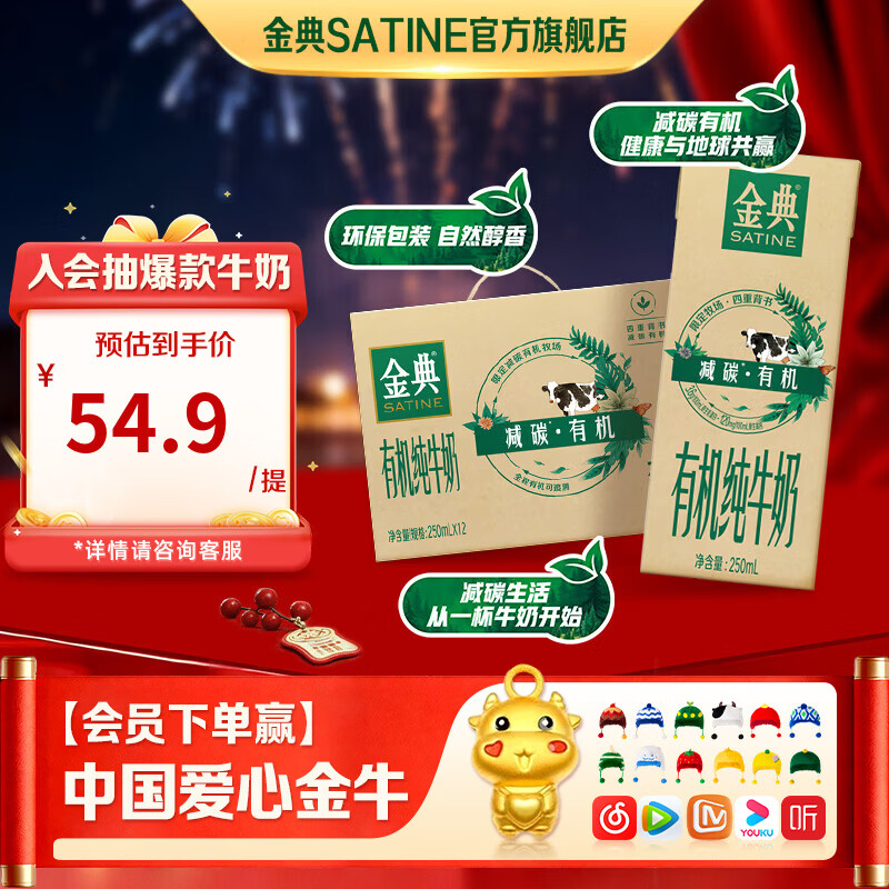 ①有机纯奶梦幻盖250ml 10盒 2箱