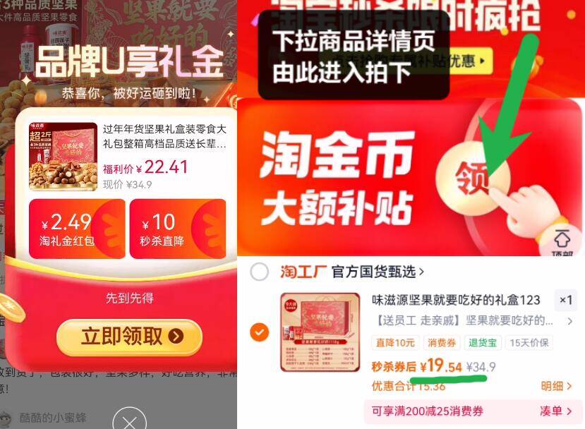 19.8亓速叠2淘金币 礼金 需下拉详情进淘金币会场拍 良品铺子 坚果零食礼盒1118g好单发报员2026年01月31日 21:210举报 19.8亓速叠2淘金币 礼金需下拉详情进淘金币会场拍【良品铺子】坚果零食礼盒1118ghttps://m.tb.cn/h.7sU5Kwn复制文案