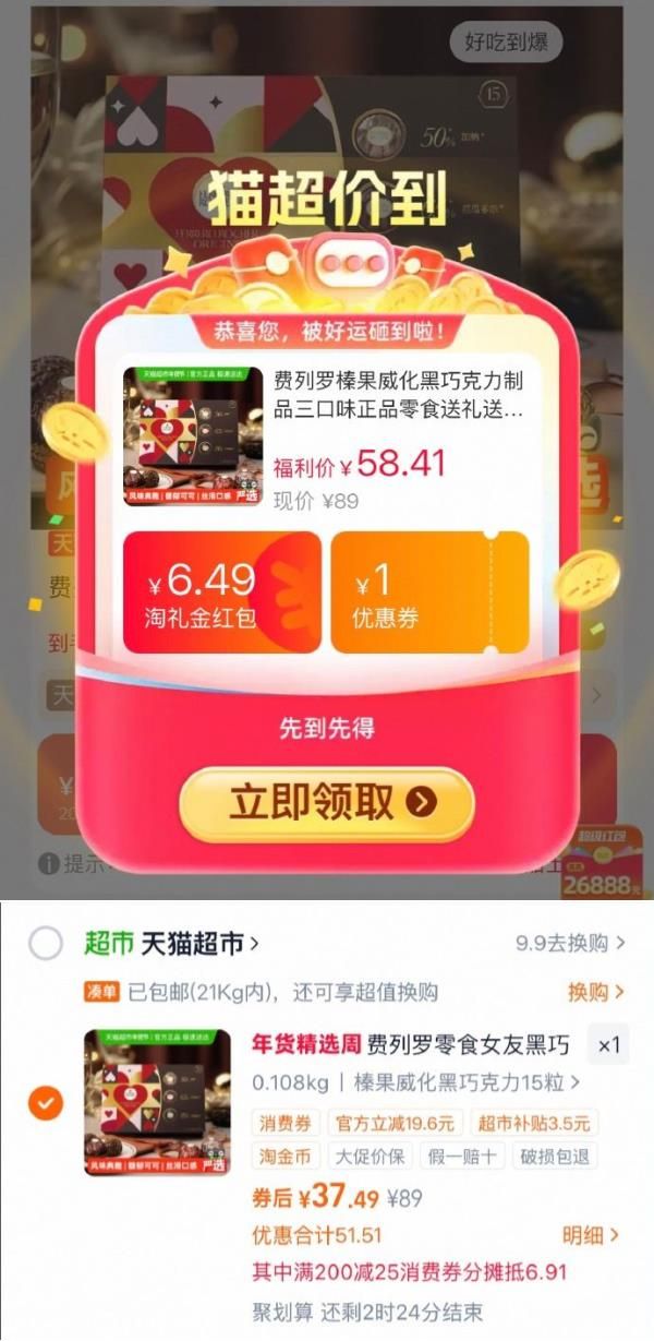 合理凑单用200-25红包或消费券