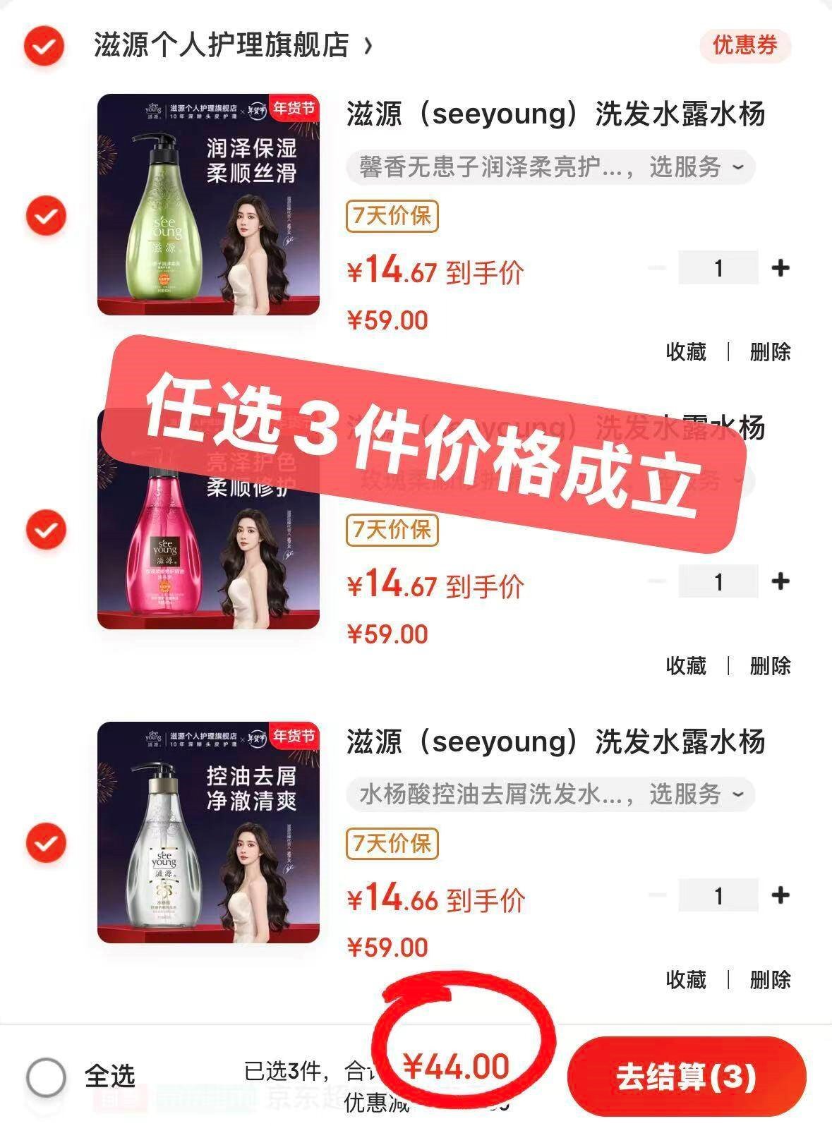 任选3件44亓,折14.6亓/瓶
