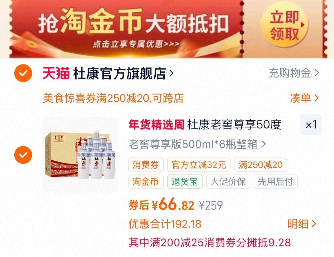 2、凑1件,用200-25消费劵