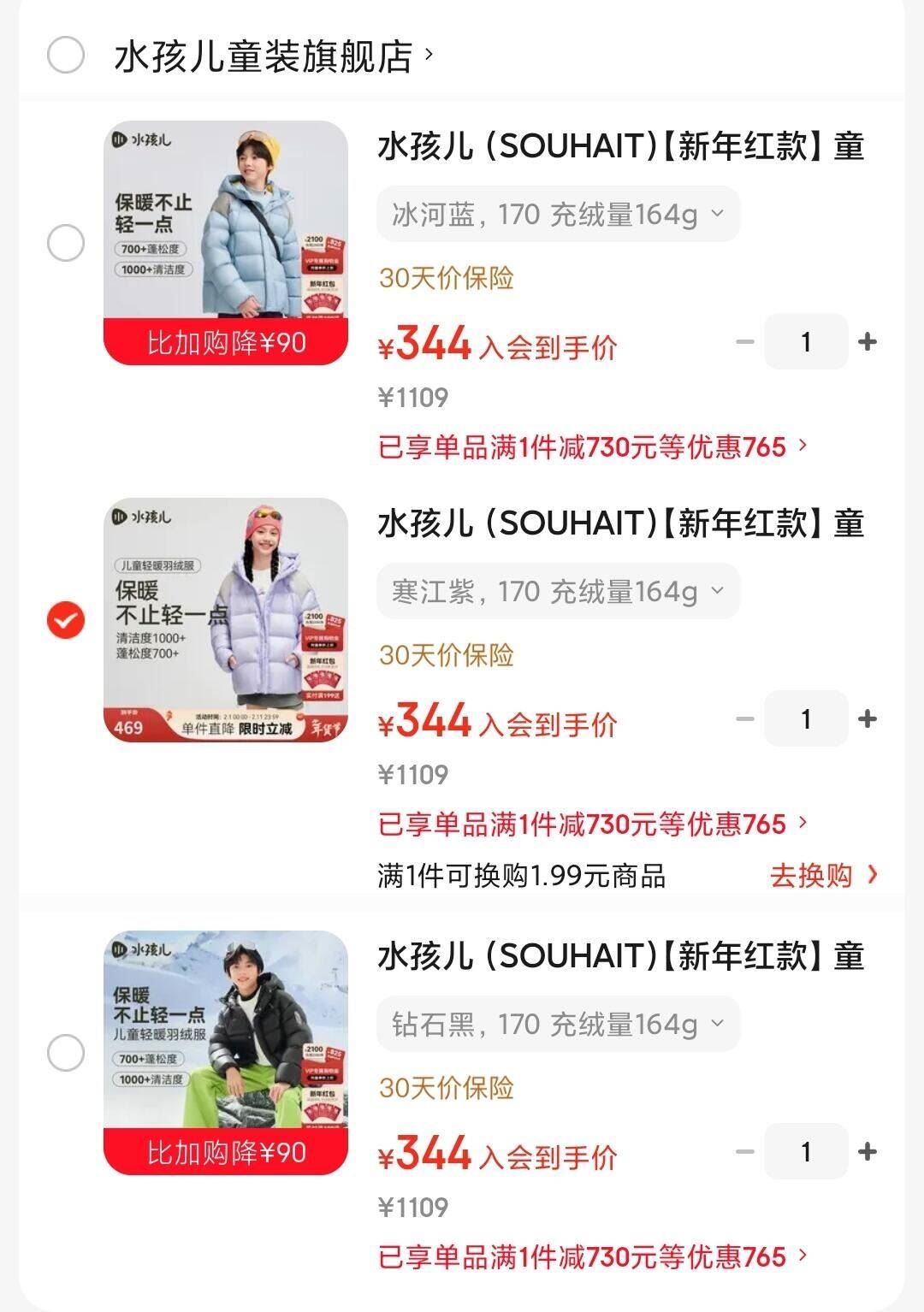 344元 最大170cm! 水孩儿 儿童保暖加厚轻暖绒羽绒服 多款任选 男孩女孩都有 好单发报员 2026年02月01日 12:12 0 举报 344元 最大170cm!水孩儿 儿童保暖加厚轻暖绒羽绒服https://u.jd.com/JDWm9VQ 多款任选 男孩女孩都有 复制文案