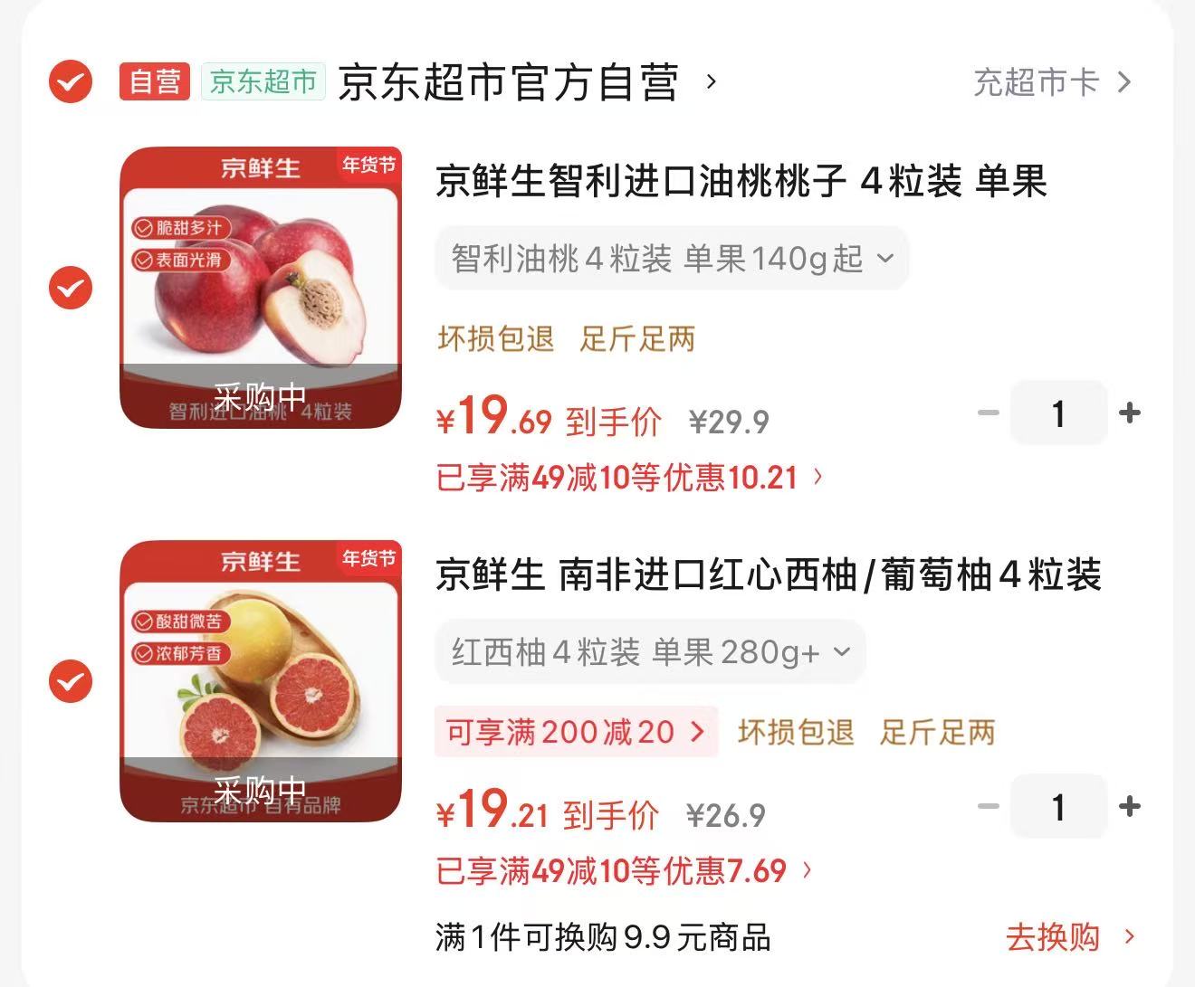 京鲜生 智利进口油桃桃子4粒装 单果140g起
