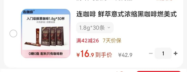 连咖啡 鲜萃意式浓缩黑咖啡 1.8g*30条【16.9】
